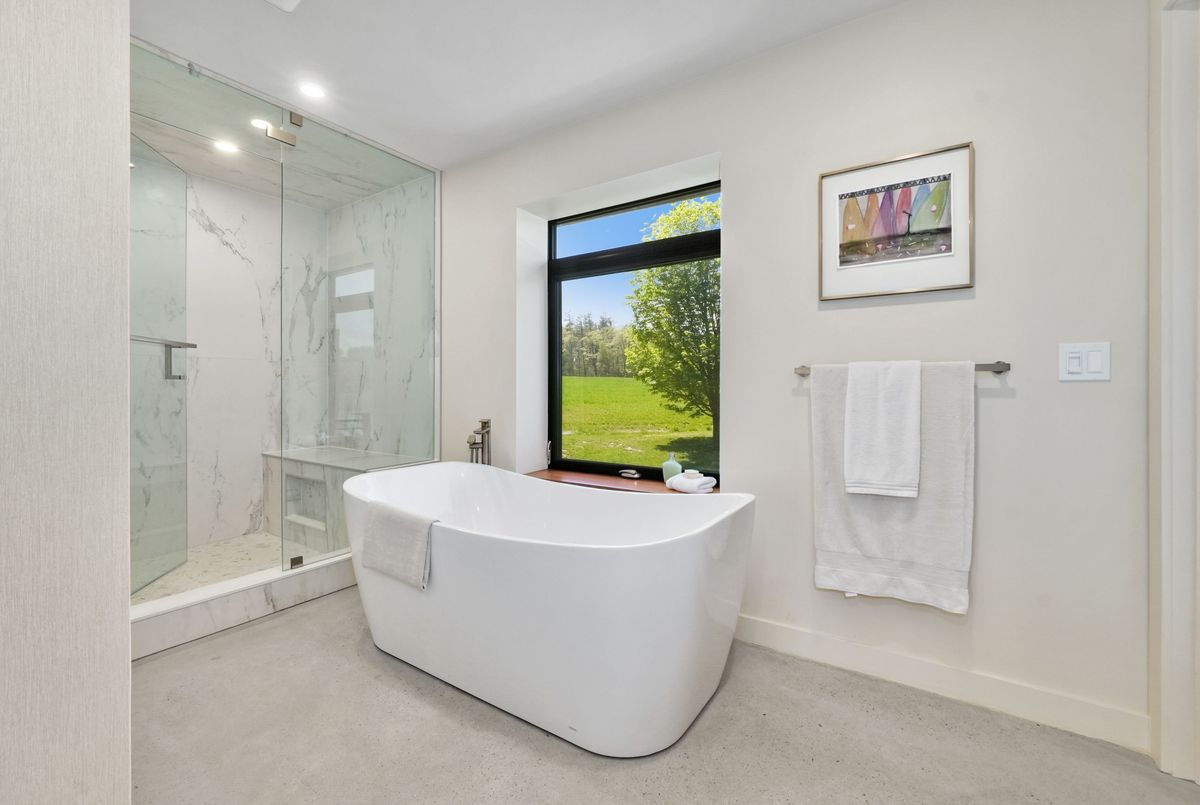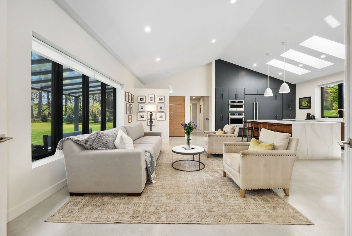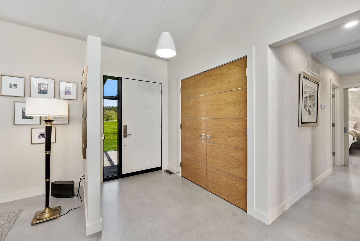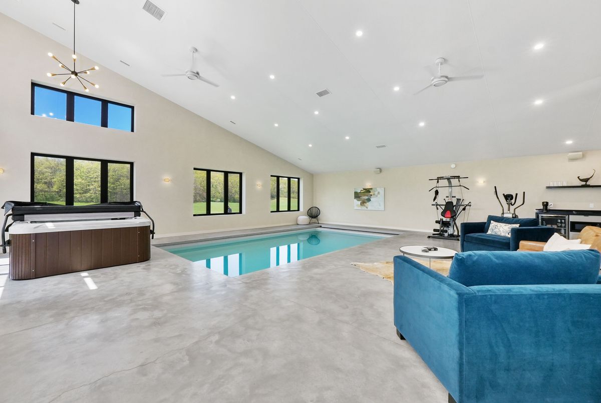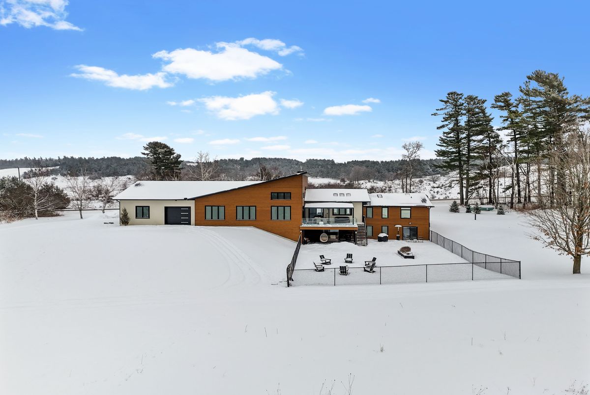 Set on a sprawling 23-acre estate, this striking modern residence exemplifies the perfect balance between contemporary elegance and rural serenity. Every detail has been thoughtfully curated, blending sleek architectural design with high-performance construction, including efficient ICF walls and radiant heated concrete flooring. Step into a grand, open-concept living area defined by cathedral ceilings and a dramatic wall of windows. A double-sided Napoleon propane fireplace anchors the space, connecting the living room to a sophisticated dining area adorned with modern lighting and walkout to the second-level deck ideal for outdoor entertaining. Sunlight pours into the kitchen through oversized windows and skylights, offering breathtaking views of the rolling countryside beyond and showcasing top-tier Jenn-Air appliances, striking Dekton countertops and a waterfall island with a breakfast bar. Resort-style living awaits in the private attached oasis. A 14x24 heated indoor saltwater pool, soaring 20-foot ceilings, expansive windows, a hot tub, and space for a lounge or home gym create an oasis-like experience, ideal for year-round relaxation and entertaining. The primary suite is a tranquil retreat featuring a walk-in closet and spa-inspired ensuite with dual vanity, freestanding soaker tub, and glass shower enclosure with steam shower. An additional bedroom and two bathrooms round out the level. The finished lower level adds flexible living space, including a sprawling bedroom suite with sitting area, semi-ensuite bath, and walkout to a covered patio. A massive recreation room with a walk-in closet offers potential for a future fourth bedroom. Enjoy a lower covered patio area, fenced yard, and firepit area, perfect for summer nights under the stars. Additional highlights include a radiant heated 4-car garage and a 16x24 barn for versatile use. This one-of-a-kind property is the pinnacle of modern rural luxury. Just under 15 minutes to Cobourg and Highway 401.